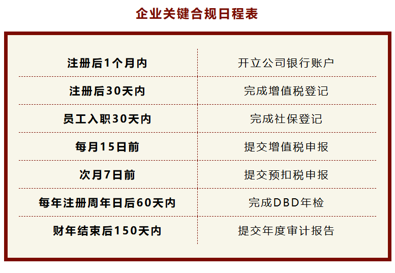 👉注册资本必须按照要求实缴,企业需在注册当年内至少实缴25%,剩余部分则需在3年内全额缴清。若逾期,公司不仅无法通过DBD年检,更可能被列为异常经营状态。